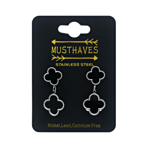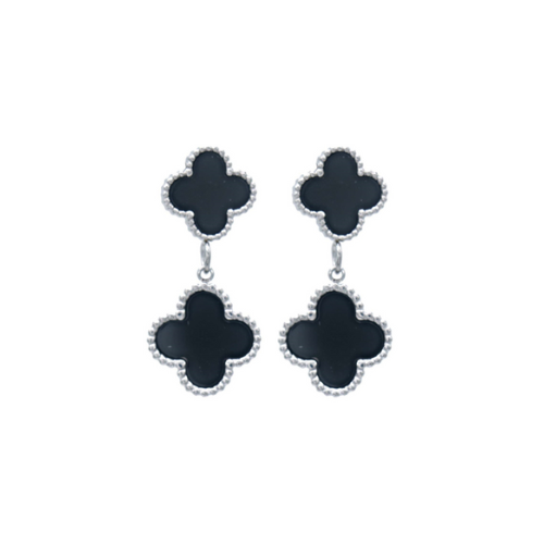 Oorknopjes, cascade van twee klavertjes met zwarte vulling.